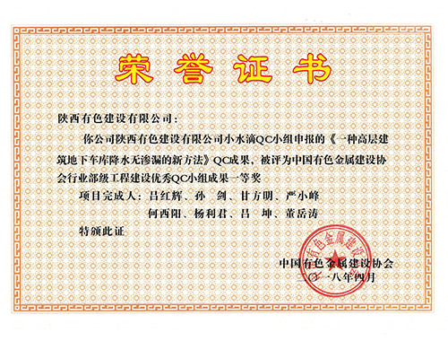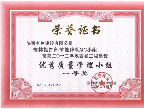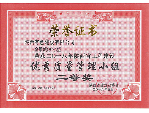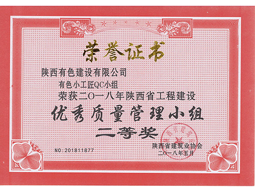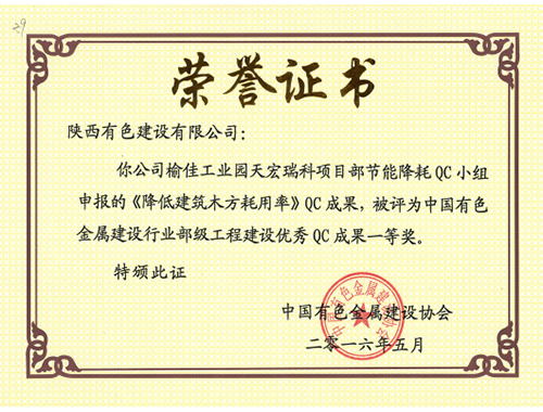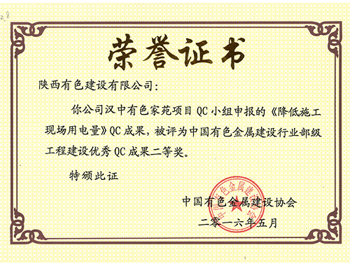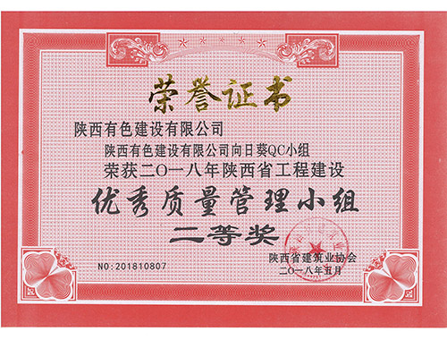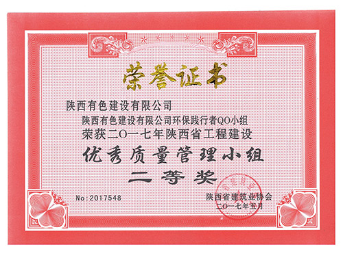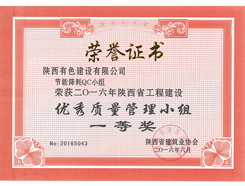荣获2016年陕西省工程建设优秀质量管理...