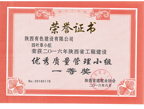 四叶草2016陕西省工程建设优秀质量管理...