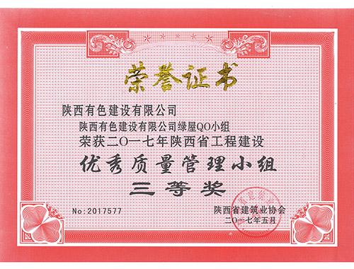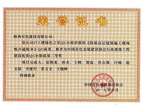 绿屋QC小组荣获2017年陕西省工程建设...