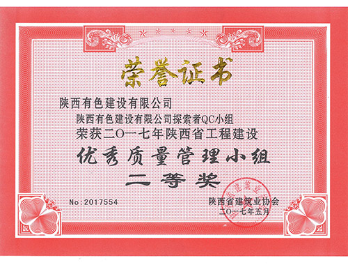 探索者QC小组荣获2017年陕西省工程建...