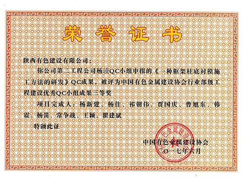 践行者QC小组荣获2017年陕西省工程建...